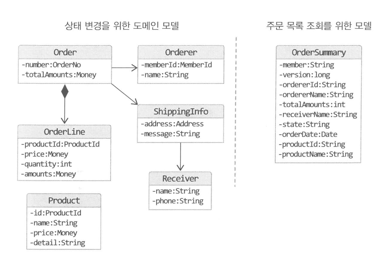 - 이러한 구현의 복잡도를 낮추는 간단한 방법은 상태 변경을 위한 모델과 조회를 위한 모델을 분리하는 것이다.